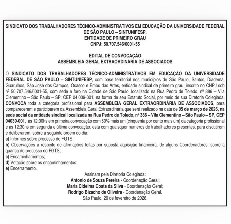 O Sindicato dos Trabalhadores da Universidade Federal de São Paulo - SINTUNIFESP - constituído em 1992, representa os interesses da categoria dos técnicos-administrativos da Unifesp.